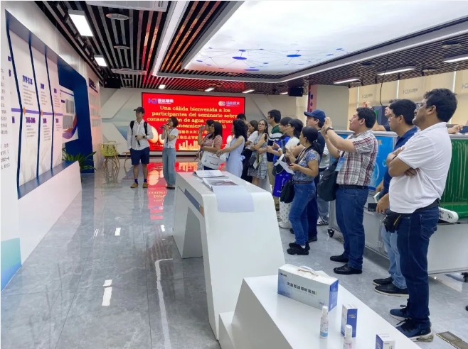 本次代表团共有30名学员,分别来自秘鲁农业部、国家水务局、饮用水和下水道服务局、国家卫生服务监督局等政府机构。他们首先参观了福建浩达智能科技股份有限公司的展厅,详细了解了浩达智能的发展历程,见证了浩达智能在水处理智能制造领域的创新成果和所获得的企业荣誉。